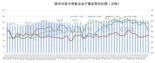 据兰格钢铁网监测数据显示,截至8月27日,国内35家中厚板样本钢厂周度产量均值为158.66万吨,较7月均值减少8.48万吨,同比增加17.87万吨。8月份国内中厚板产量有所下降,主要因为热卷利润好于中厚板表现,部分钢厂铁水从中厚板向热卷转移,叠加部分钢厂生产品种钢占比增加,综合影响下,8月份中厚板产量有所下降。