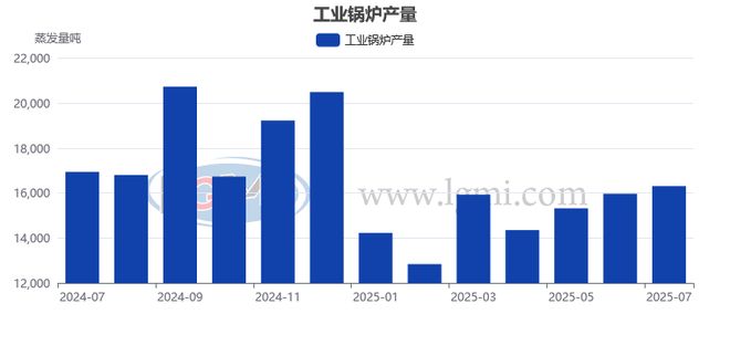 2025年7月全国工业锅炉产量为16314.9蒸发量吨,环比增加341.6蒸发量吨,同比下降625.1蒸发量吨。2025年1-7月全国工业锅炉产量为87670.8蒸发量吨,累计下降17.63%。7月份工业锅炉产量略有回升,同比跌幅继续收窄。