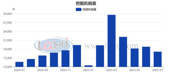 据中国工程机械工业协会对挖掘机主要制造企业统计,2025年7月销售各类挖掘机17138台,同比增长25.2%。其中国内销量7306台,同比增长17.2%;出口量9832台,同比大幅增长31.9%。1-7月累计销售挖掘机137658台,同比增长17.8%;其中国内销量72943台,同比增长22.3%;出口64715台,同比增长13%。