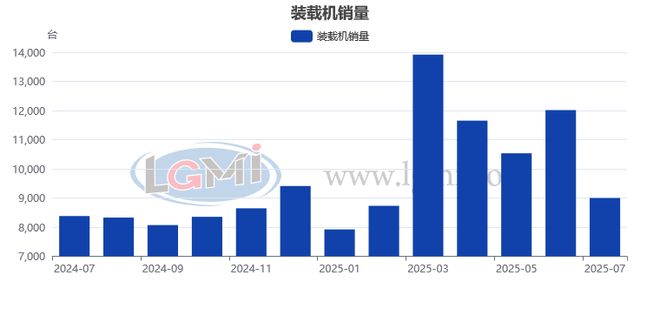 2025年7月销售各类装载机9000台,同比增长7.41%。其中国内销量4549台,同比增长2.48%;出口量4451台,同比增长13%。2025年1—7月,共销售各类装载机73769台,同比增长12.8%。其中国内销量40171台,同比增长20.4%;出口量33598台,同比增长4.85%。